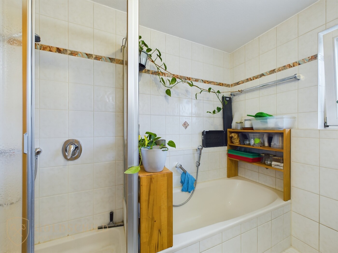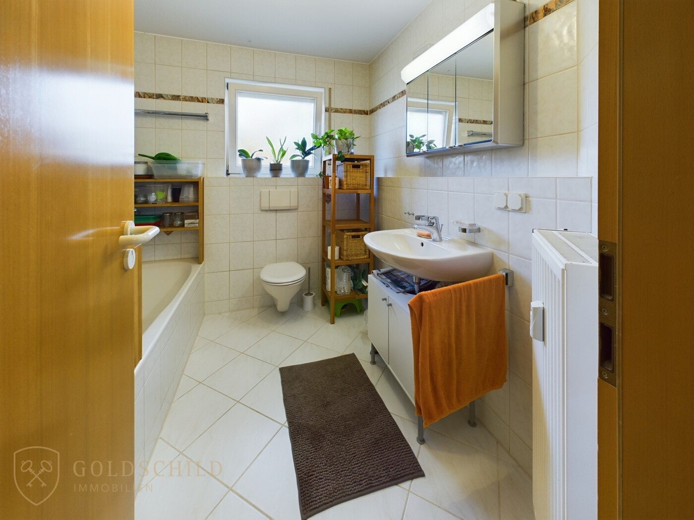 * Badezimmer mit Dusche, Badewanne und Waschbecken